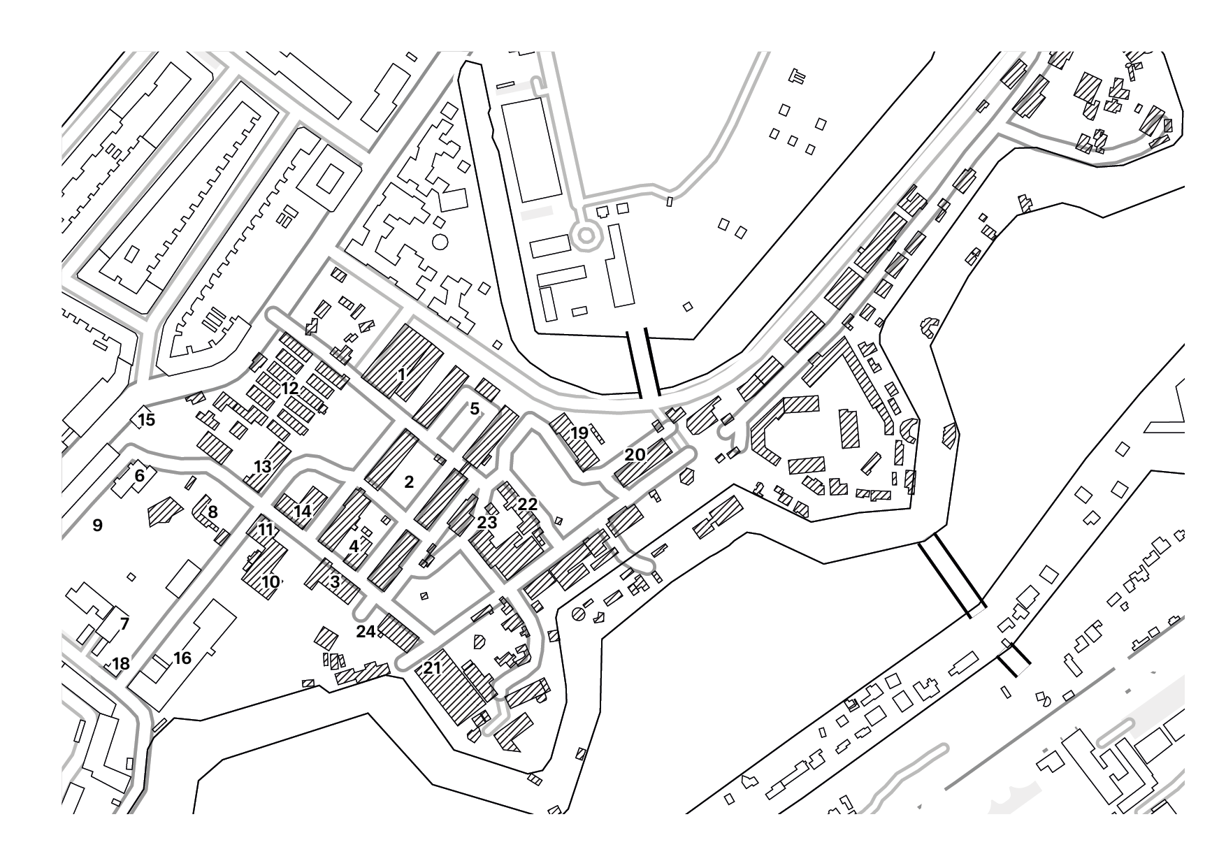 1 Gray Hall 2 Maelkevejen 3 Hotel 4 Woodstock 5 Scavenger’s House (South Region) 6 Optimist 7 Info House 8 Skateboard Track 9 Flea 10 The Court House 11 Bakery 12 Psyak 13 Machine Hall 14 Opera House 15 Rose House 16 Ark of Peace 17 Barracks 18 Boom House 19 Love House 20 Multi House 21 Green Hall 22 The Bath House 23 Bicycle Forge 24 Glass House